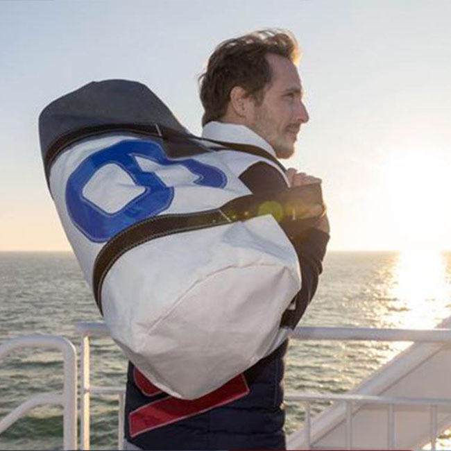 727 Sailbags derives its name from the number printed on the sail of the family yacht of Jean-Baptiste Roger, one of the founders. They initiated the culture of numbers on the yokes, which adorn most of 727 Sailbags’ creations. Numbers link the brand to the world of sailing, regattas and ocean racing. Each 727 Sailbags creation is unique, as evidenced by the authentication label: the type of sail, the sailing vessel, with which skipper, in which seas, which oceans, etc. The maritime history of each item can be traced, combining authenticity and the latest trends.