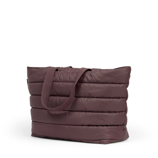 Stuff, zip and go. A soft-as-a-cloud shoulder bag for days on the go or weekends away. The take it base is your stylish sidekick with its bold, padded fabric and generously sized design. Take it from morning Pilates to an in-office day and a short weekend getaway. The chunky zip closure keeps everything contained while soft cotton shoulder straps deliver carrying comfort. Ultra-lightweight, cloud-like padding adds fun to the functionality of this everyday tote bag.
